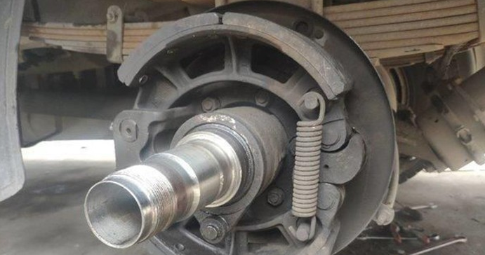 从上图可以清楚地看到,制动蹄被卡住了,由卡纸引起的力很大。无论您踩多少刹车,都无济于事。在运输过程中,车身的重量很重,制动效果也不佳,发生事故的可能性将相应增加。